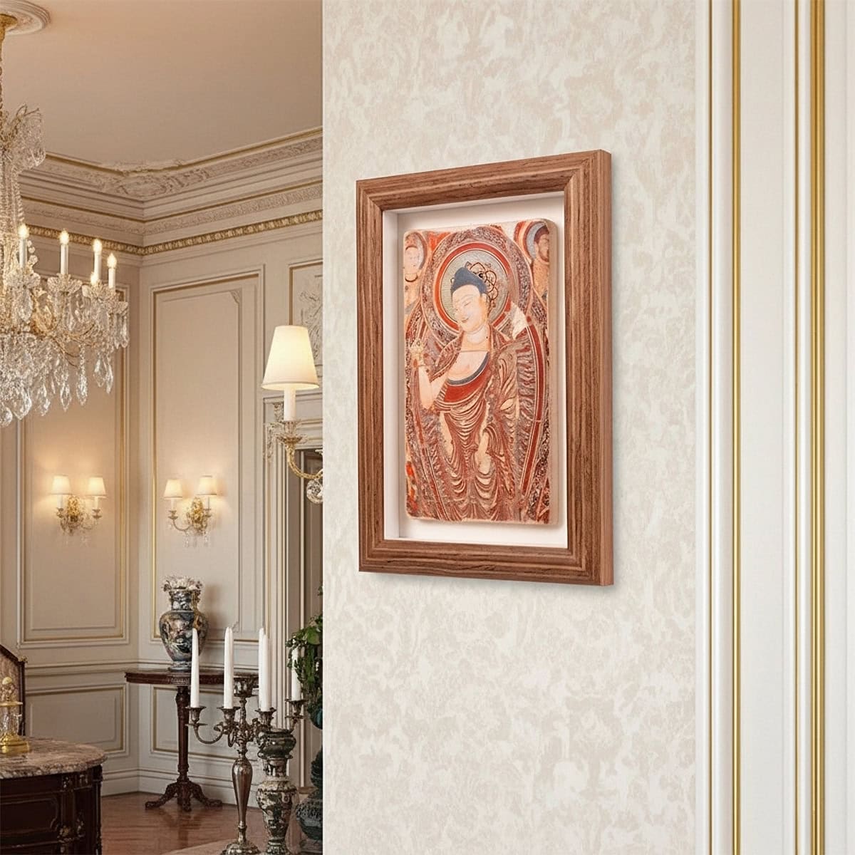 Bezeklik Thousand Buddha Caves Turpan Mural Frame – Kucha Buddha Statue Clay Relief Decorative Wall Art Decor Painting